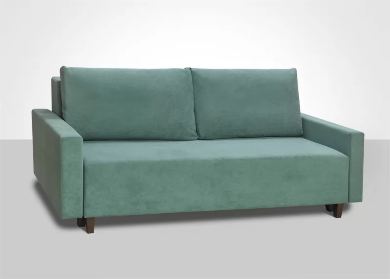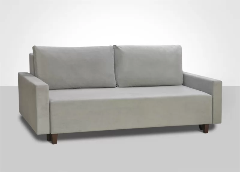 Классический минимализм. Узкий подлокотник, комфортные подушки со съемными чехлами, широкое спальное место.