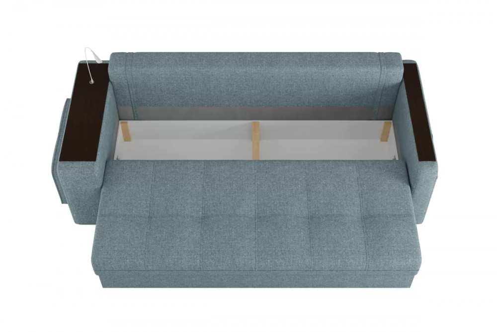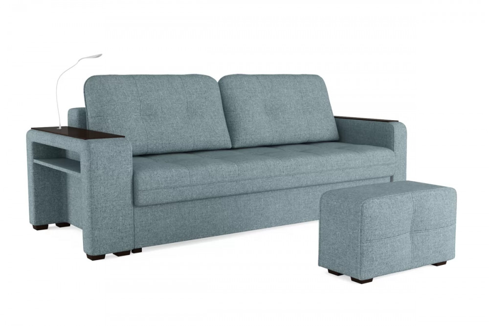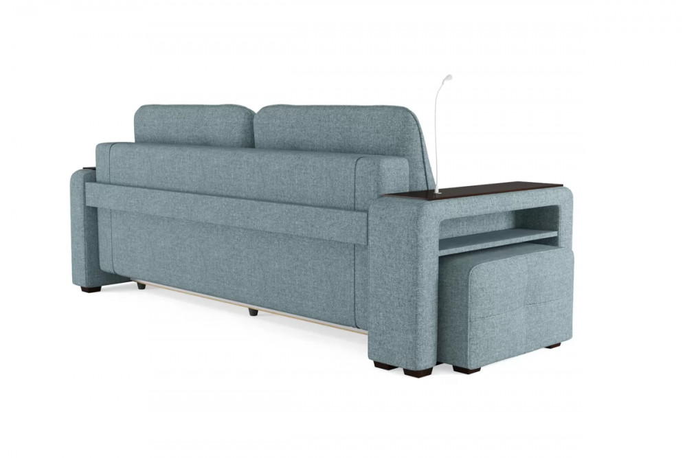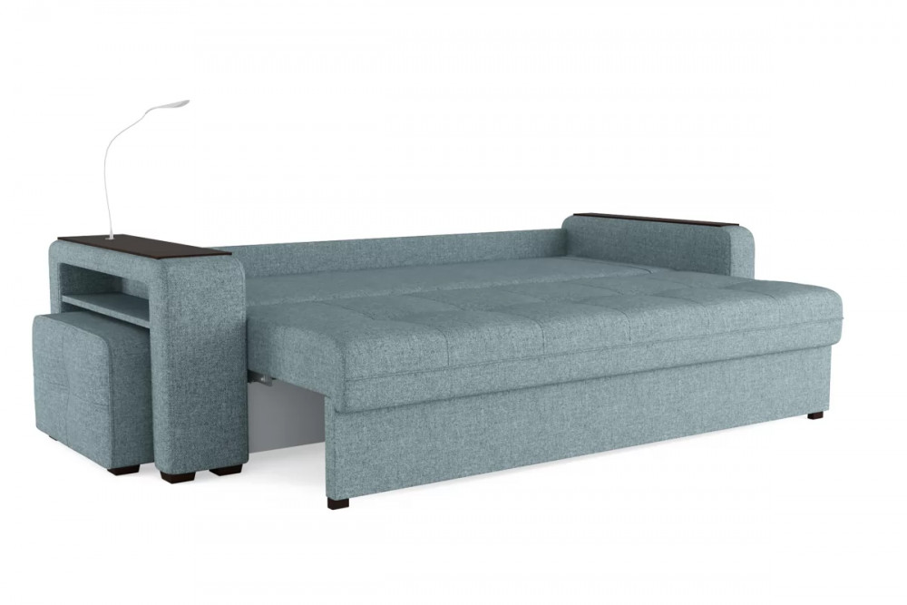 Диван «SMART 4» — это не просто мягкая мебель, а один из ключевых элементов интерьера с обширным функционалом, где эстетика тесно соседствует с комфортом и эргономичностью. Одна боковина оснащена карманом для хранения мелочей и гаджетов, другая боковина совмещает одновременно: рабочую поверхность, за счет широкой накладки, двойной usb - порт и портативную лампу точечного света, которая входит в комплект. Добавить контрастных деталей в интерьер поможет пуф, интегрированный в подлокотник. Этот вариант для современных людей, которые ценят комфорт и удобство отдыха. Мягкое сиденье с легкостью трансформируется в просторное спальное место, на котором смогут утроиться ваши гости. Стильный и уютный, он станет отличным решением, если вы ищите не только красоту, но и комфорт.