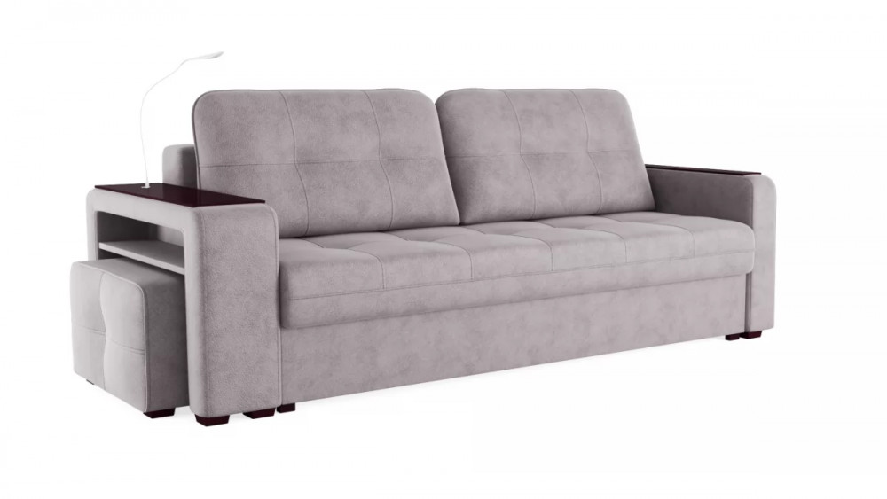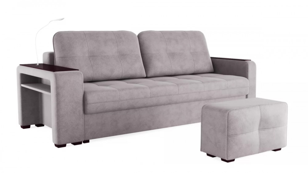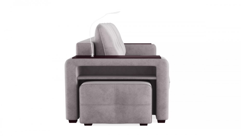 Диван «SMART 4» — это не просто мягкая мебель, а один из ключевых элементов интерьера с обширным функционалом, где эстетика тесно соседствует с комфортом и эргономичностью. Одна боковина оснащена карманом для хранения мелочей и гаджетов, другая боковина совмещает одновременно: рабочую поверхность, за счет широкой накладки, двойной usb - порт и портативную лампу точечного света, которая входит в комплект. Добавить контрастных деталей в интерьер поможет пуф, интегрированный в подлокотник. Этот вариант для современных людей, которые ценят комфорт и удобство отдыха. Мягкое сиденье с легкостью трансформируется в просторное спальное место, на котором смогут утроиться ваши гости. Стильный и уютный, он станет отличным решением, если вы ищите не только красоту, но и комфорт.