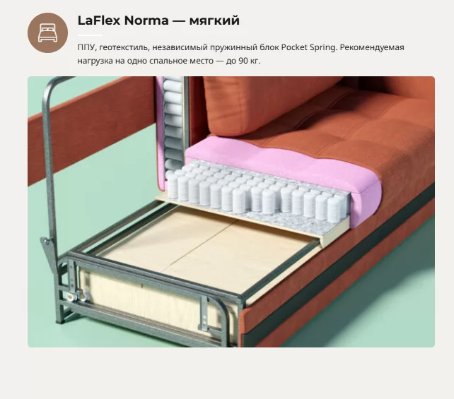 Матрас: LaFlex Norma — ППУ, геотекстиль, независимый пружинный блок Pocket Spring.