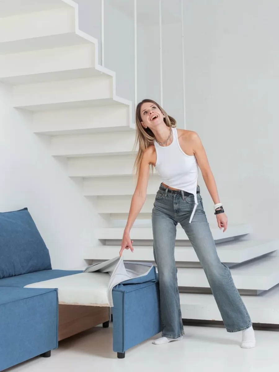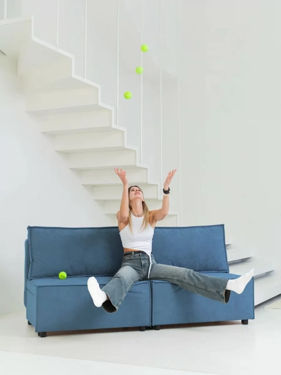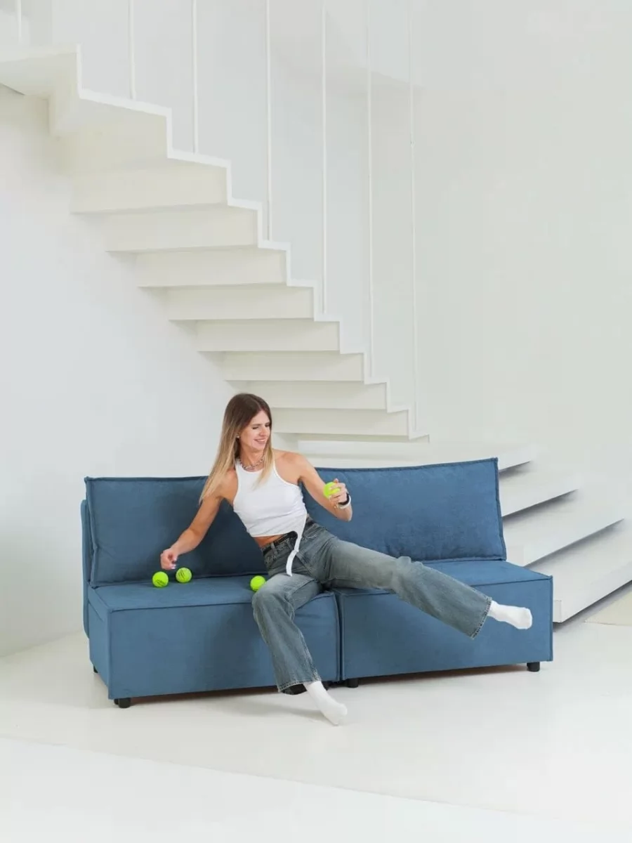 Прямой диван Киви 1 Нео Азуре/Подушки Нео Латте