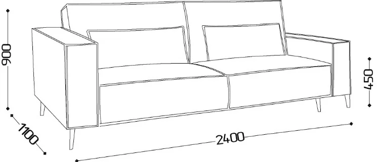 Прямой диван Пегас 1 БД с узкими подлокотниками