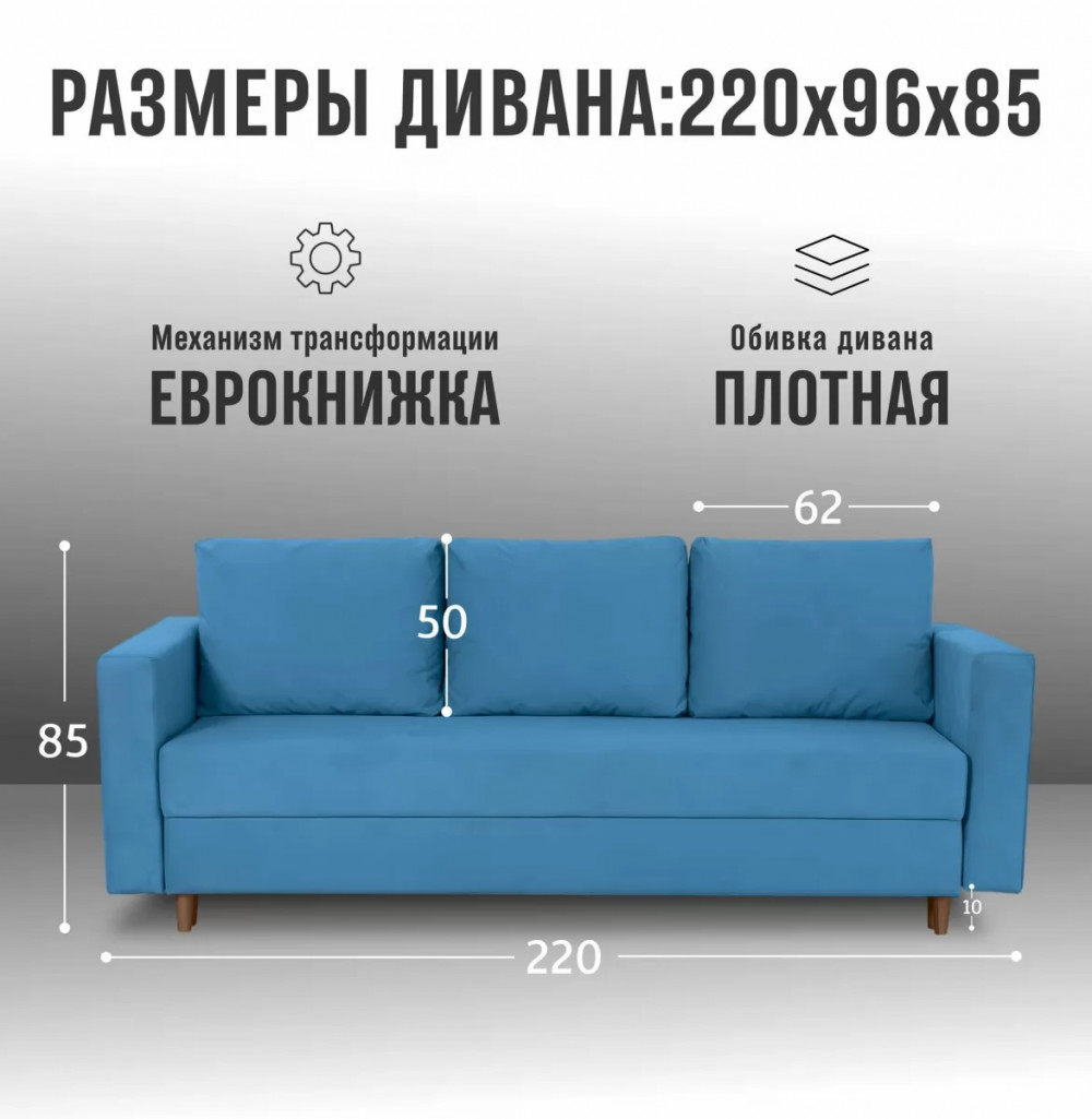 – Обивка дивана выполнена в велюре прочная, не прихотлива в чистке, устойчивая, не оставляет зацепов