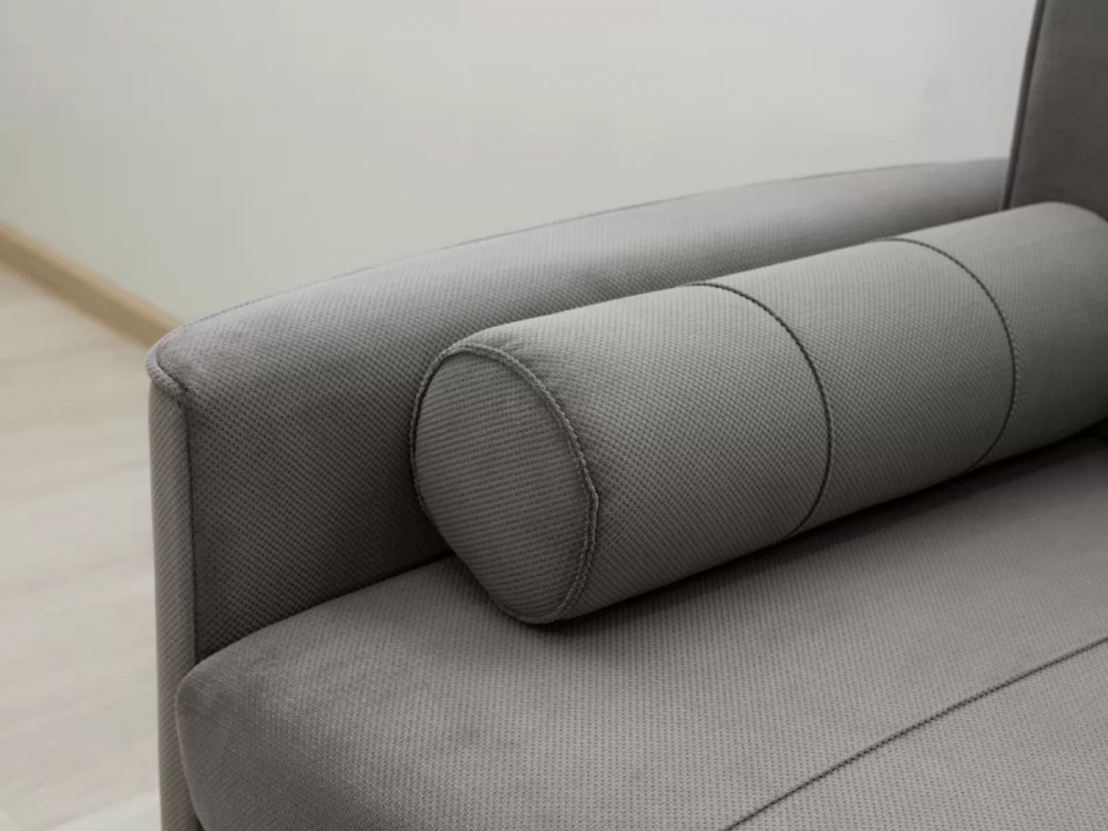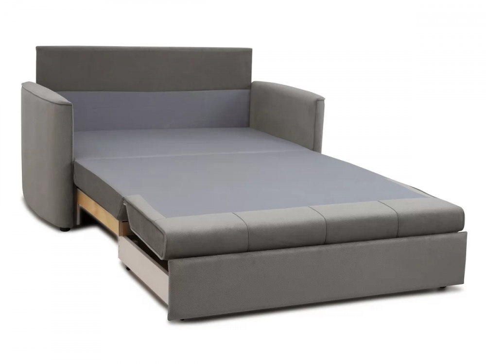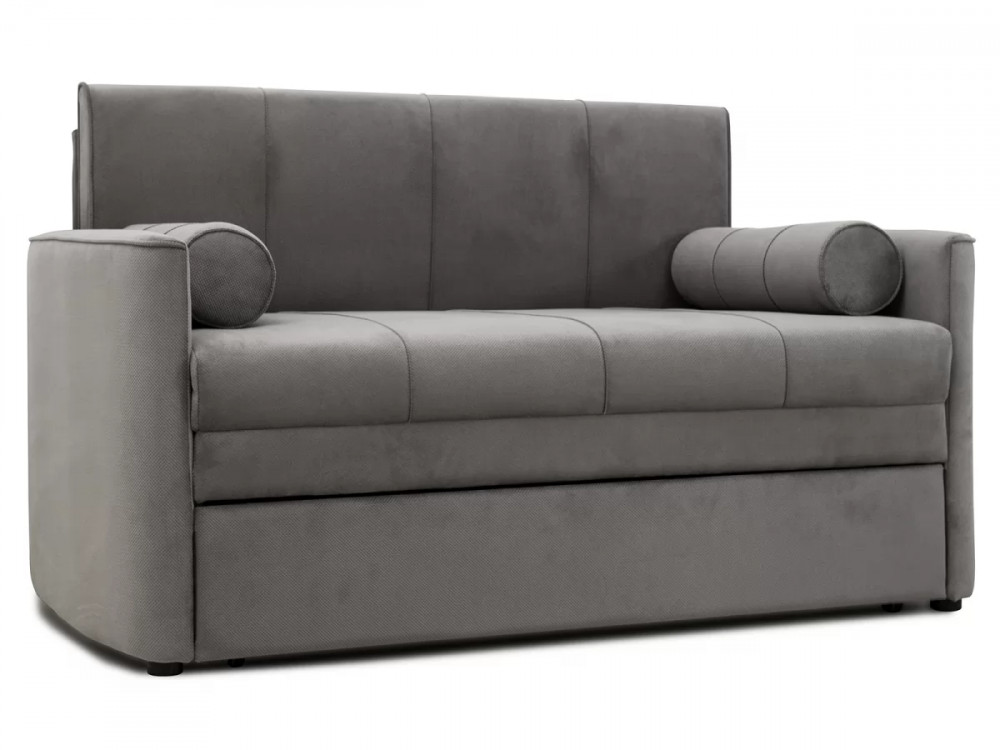 Диван-кровать Мелани Р (120) - компактный современный диванчик. Скругленные подлокотники с кантами подчеркивают эргономичность модели. Простой и надежный механизм трансформации на каждый день обеспечит удобным спальным местом ребенка или подростка. Может использоваться в качестве гостевого спального места для взрослого. Размер сп. места 195 х 120 см, есть небольшой бельевой ящик. Диван выполнен в мягком фактурном велюре. "Пальчиковый эффект" на ткани обивки выражен средне. Опоры - цвет черный, круглые, высота 25 мм., выполнены из высококачественного пластика. Прочность конструкции ножек обеспечена ребрами жесткости и внутренним креплением под фурнитуру.