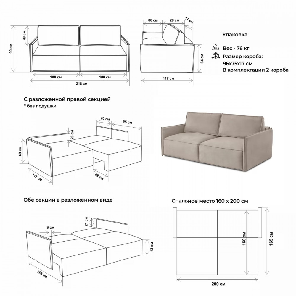 Размер спального места: 1600х2000 мм