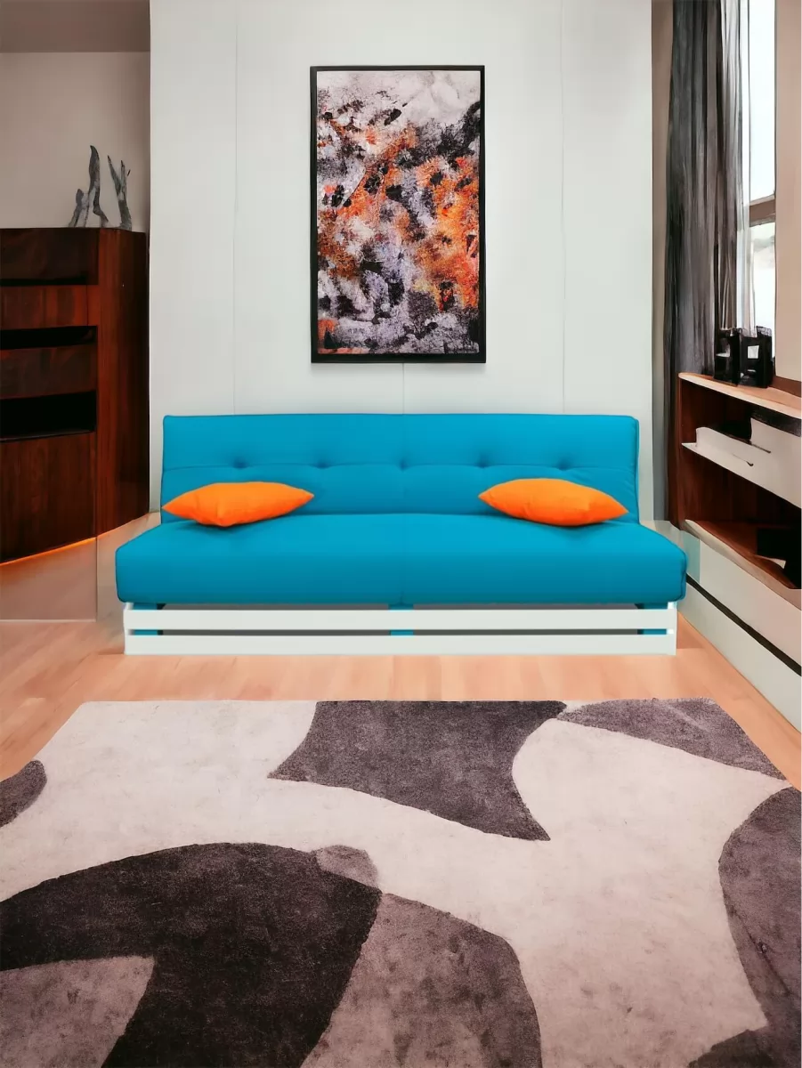 Прямой диван манго 1 Нео Азуре/Подушки Нео Оранж