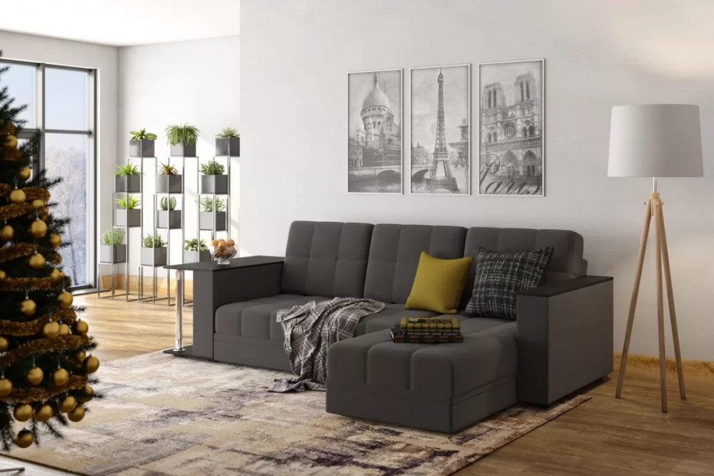 Диван АТЛАНТ угловой со столиком Neo 26 графит темно-серый