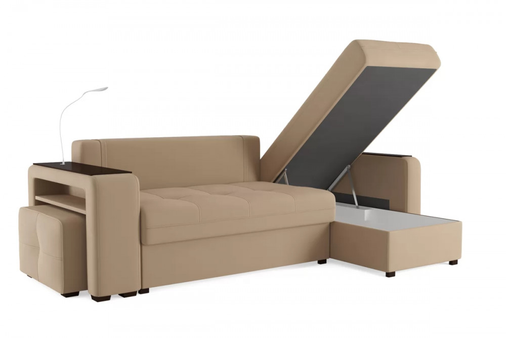 Баланс между эстетикой и функциональностью — основное требование к современной мебели. Мягкая мебель должна быть не просто красивой, но прежде всего удобной и функциональной. Особенно если речь идет о маленьких квартирах, где гостиная может быть одновременно и спальней, и кабинетом. С этой задачей прекрасно справится диван «SMART 4». Уникальный дизайн делает модель по-настоящему универсальной. Одна боковина оснащена карманом для хранения мелочей и гаджетов, другая боковина совмещает одновременно: рабочую поверхность, за счет широкой накладки, двойной usb - порт и портативную лампу точечного света, которая входит в комплект. Добавить контрастных деталей в интерьер поможет пуф, интегрированный в подлокотник. Этот вариант для современных людей, которые ценят комфорт и удобство отдыха.