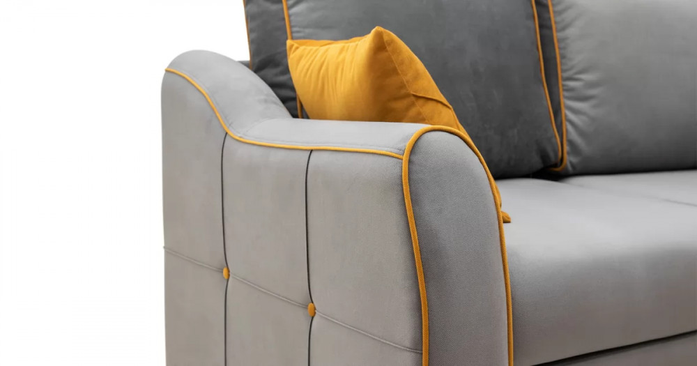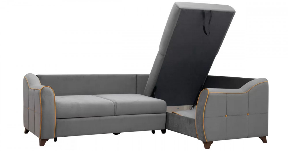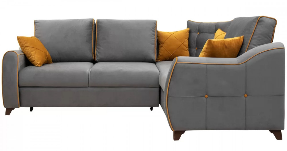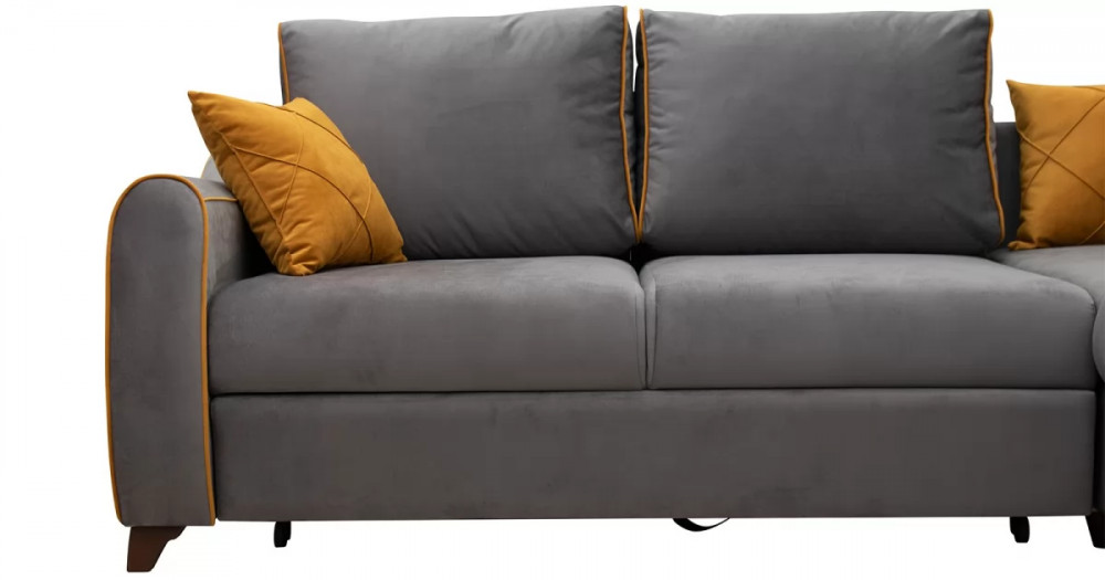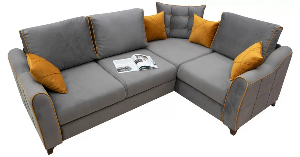 Френсис Диван-кровать угловой арт. ТД 259Габаритысложенный (Д x Г х В, мм): 2440 x 1770 x 930спальное место (Д x Ш, мм): 2220 x 1560высота посадки (мм): 480максимально допустимая нагрузка: 80 кг на одно посадочное место, 100 кг на одно спальное местоМеханизм трансформацииДельфин «Калипсо» на металлокаркасеБельевой ящикв оттоманкеодно отделениеразмер отделения (Д x Ш, мм): 1533 x 770 x 200Варианты сборкивозможность самостоятельной сборки на любую сторонуВарианты исполнения11 артикуловсочетание тканей только как на фотоМатериалыосновная ткань: Амиго (велюр)выполняется в тканях: Амиго грей (кварцевый серый), Амиго йеллоу (золотистый желтый)каркас: фанера| Цвет | Серый |