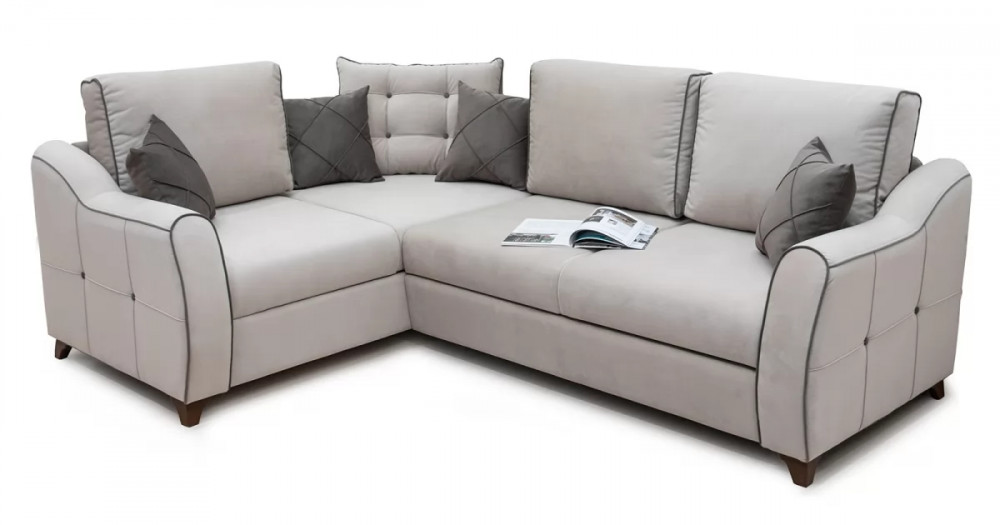 Френсис Диван-кровать угловой арт. ТД 261Габаритысложенный (Д x Г х В, мм): 2440 x 1770 x 930спальное место (Д x Ш, мм): 2220 x 1560высота посадки (мм): 480максимально допустимая нагрузка: 80 кг на одно посадочное место, 100 кг на одно спальное местоМеханизм трансформацииДельфин «Калипсо» на металлокаркасеБельевой ящикв оттоманкеодно отделениеразмер отделения (Д x Ш, мм): 1533 x 770 x 200Варианты сборкивозможность самостоятельной сборки на любую сторонуВарианты исполнения11 артикуловсочетание тканей только как на фотоМатериалыосновная ткань: Амиго (велюр)выполняется в тканях: Амиго крем (серо-бежевый), Амиго шоколад (коричневый)каркас: фанера| Цвет | Серый, Бежевый, Белый |