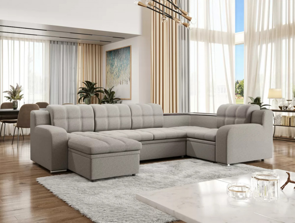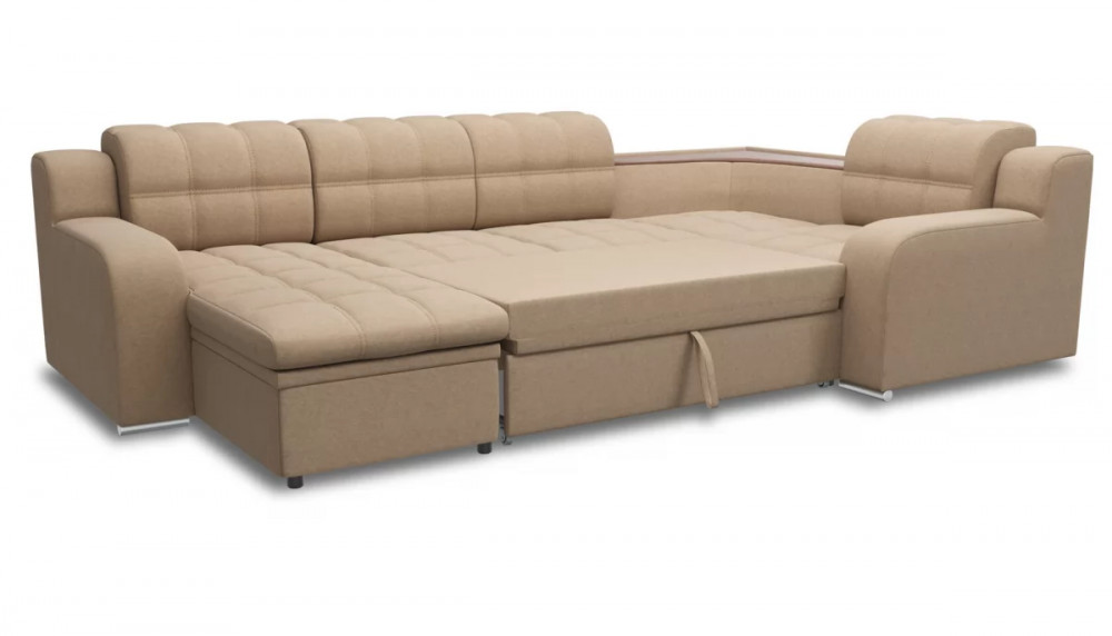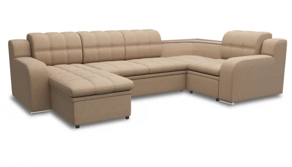 Диван является композиционным центром «гостевой комнаты». Коллекция «Жемчуг» одна из лидеров продаж фабрики. Широкий подлокотник, красивая двойная строчка, фиксированные, несъёмные подушки – такой диван дополнит любой интерьер и создаст домашнюю уютную атмосферу. Диван оснащён механизмом трансформации «Дельфин». В разложенном состояние превращается в комфортное спальное место. В угловых элементах дивана имеются дополнительные места для хранения. Кресло так же оснащено дополнительным коробом для хранения вещей. Полка углового сектора по умолчанию изготавливается в основной ткани дивана. Возможно исполнение полки углового сектора ЛДСП Венге.