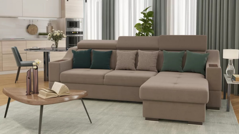 Подчеркнуты строгие линии модели «Сириус 2», что придает ему уверенный современный вид. Диван оснащён механизмом трансформации «Дельфин». В разложенном состояние превращается в комфортное спальное место. Не требуется отодвигать диван от стены. Подушки не сьемные, декоративные подушки 6шт входят в комплект дивана, по цветовому решению комплектуются на усмотрение фабрики. Декративный практичный подлокотник МДФ, дополняте функциональность дивана.
