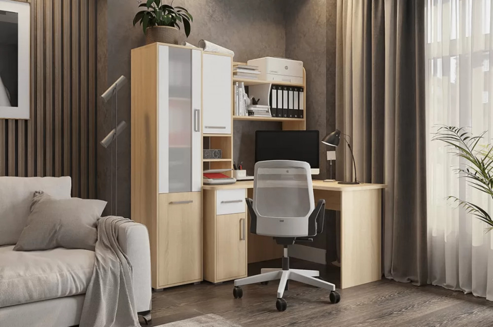 Стол компьютерный Лайт К1 дуб сонома/белый