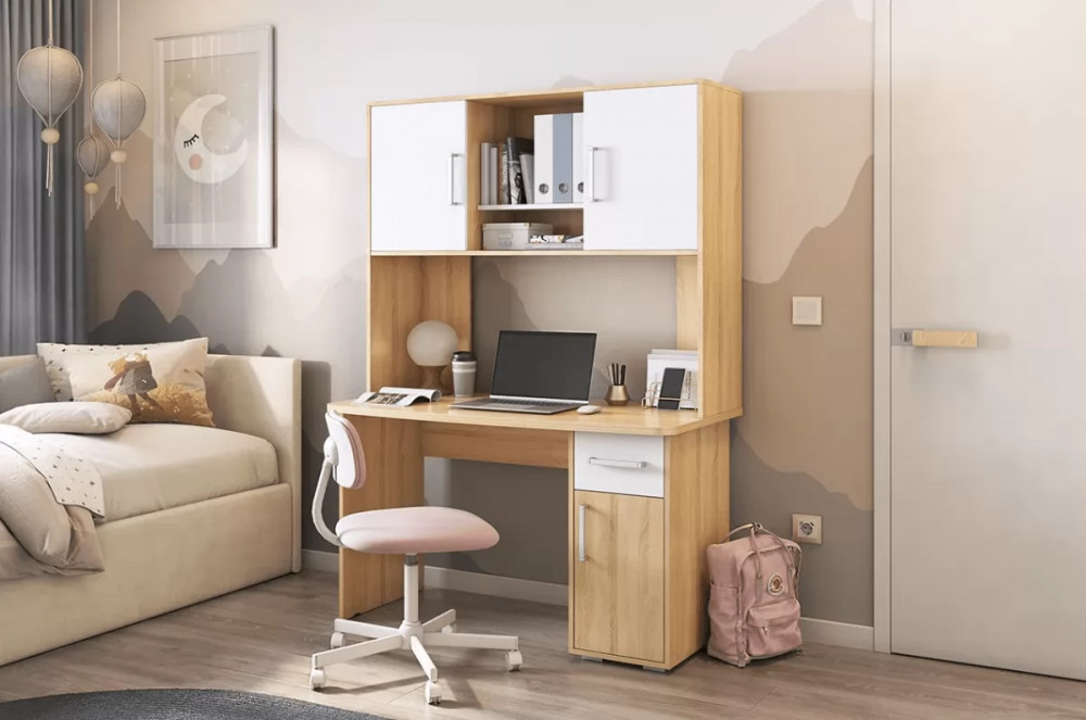 Стол компьютерный Лайт К2 дуб сонома/белый