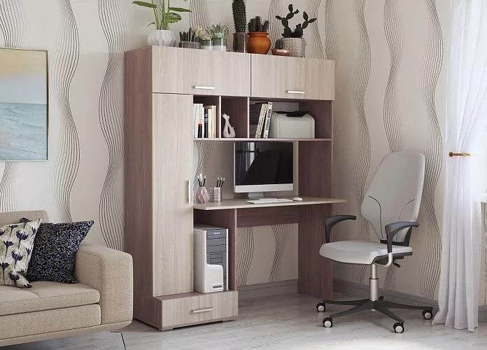Компьютерный стол ПКС-1: отличное решение для подростковой комнаты или кабинета. Модель укомплектована одним ящиком на роликовых направляющих, вместительными шкафчиками с дверками, а также полками.