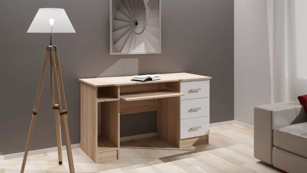 Стол компьютерный "ПКС-12" (ш1200*г600*в750мм), ЛДСП дуб сонома/белый глянец