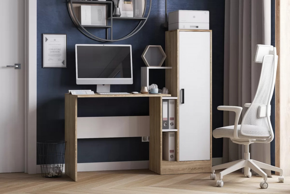 Стол компьютерный СКМ-2 (ш1350*г600*в1350мм), ЛДСП Дуб сонома/ЛДСП Белый