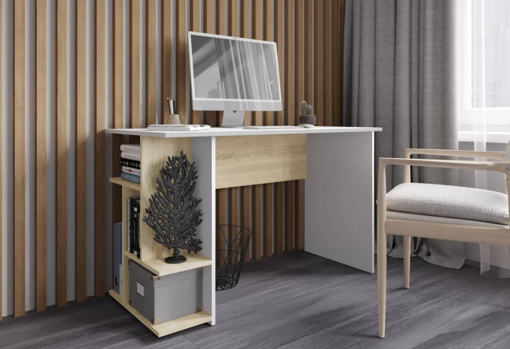 Стол компьютерный СКМ-6 (ш1200*г600*в750мм), Дуб сонома/ЛДСП Белый