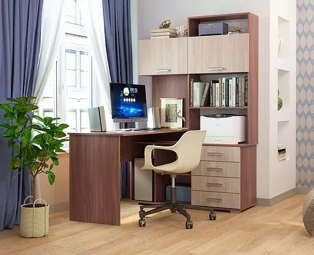 Стол компьютерный "ПКС- 5" (ш1250*г600*в1968мм), ЛДСП венге/дуб белфорд (2уп)