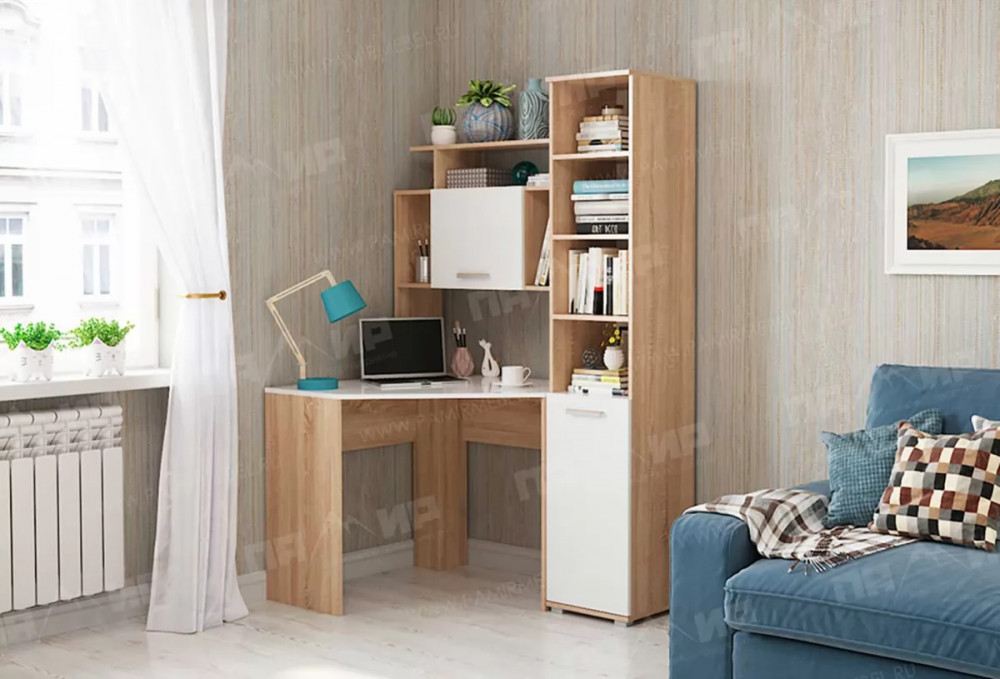 Стол компьютерный угловой "ПКС- 8" УНИ (ш890*г600*в1852мм), ЛДСП дуб сонома/белый глянец (Памир)