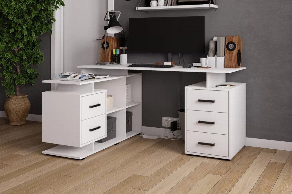 Стол компьютерный угловой СКМУ-4 (ш1360*г966*в750мм), ЛДСП Белый
