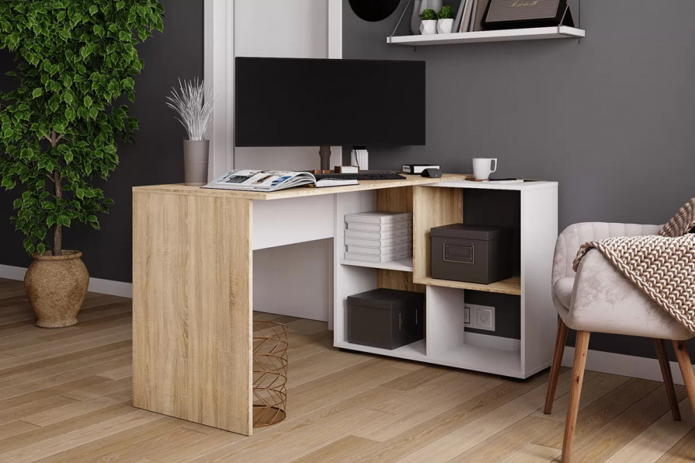 Стол компьютерный угловой СКМУ-4 (ш1360*г966*в750мм), ЛДСП Дуб сонома /ЛДСП белый