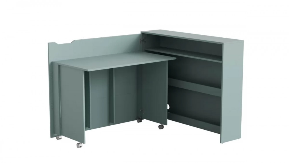 В сложенном состоянии он почти не занимает места, а в разложенном виде — это полноценное рабочее место с секциями для хранения документов, канцтоваров и прочих мелочей.