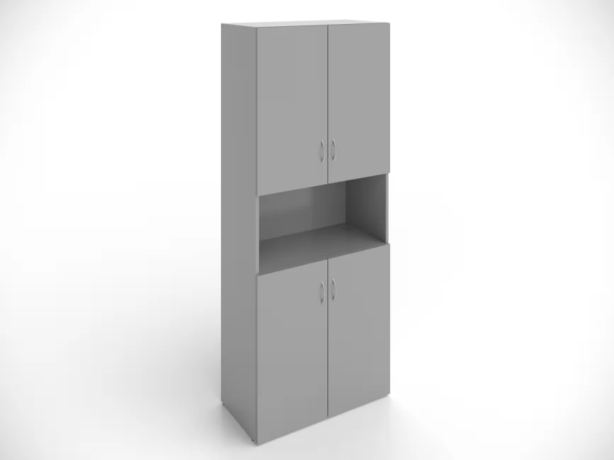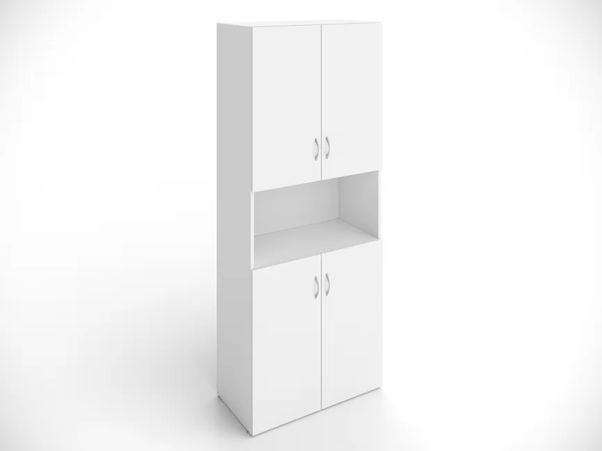 Стеллаж Кономи поделен на три яруса. На открытой полке удобно хранить посуду для кофе-брейка, каталоги и рекламные материалы. На полках за фасадами - папки с документами (в том числе формата А4), личные и другие вещи, не предназначенные для глаз посетителей.