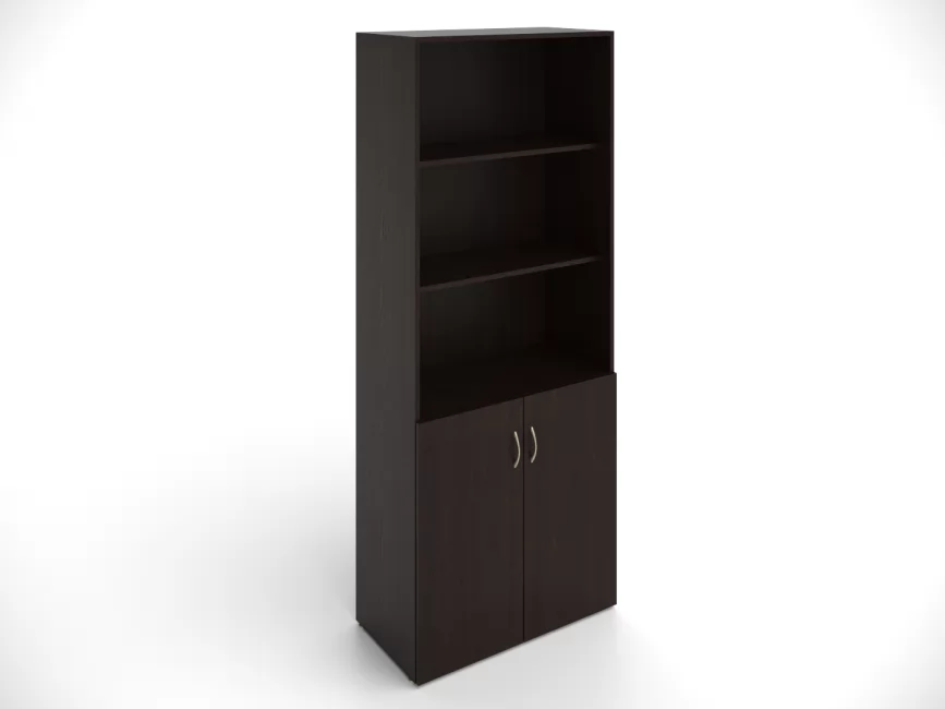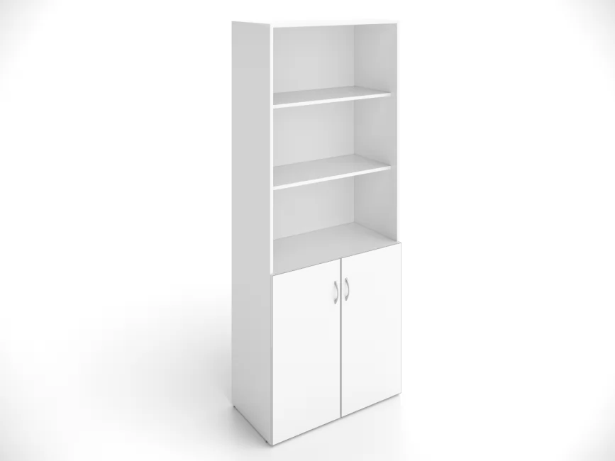 Универсальный шкаф для офисного хранения поделен на два сектора. Верхний, открытый - подойдет для совместного использования и для документов, которые нужны ежедневно. Нижний, закрытый (2 широкие полки) - для архивов и личных вещей.