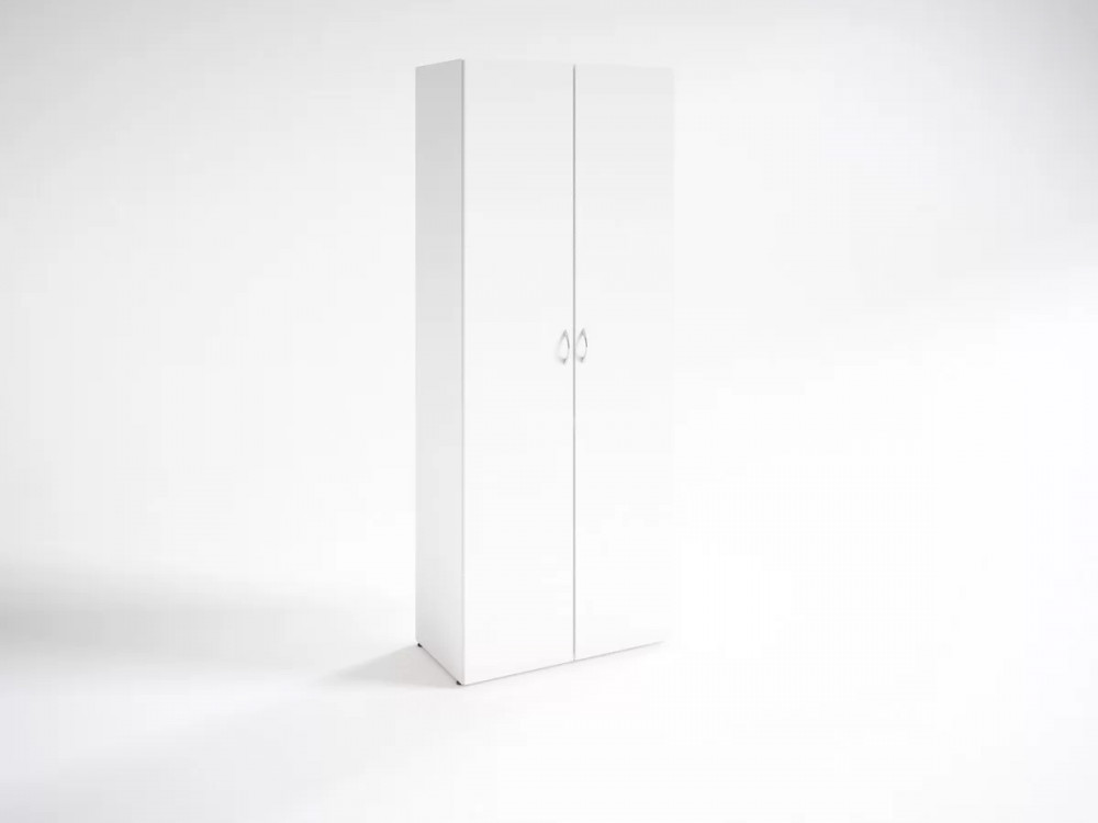 Дверцы легко открываются ручками скобками в оттенке хром. Ножки регулируются. Шкаф сочетается с рабочими столами, тумбами и другими системами хранения из коллекции Кономи.