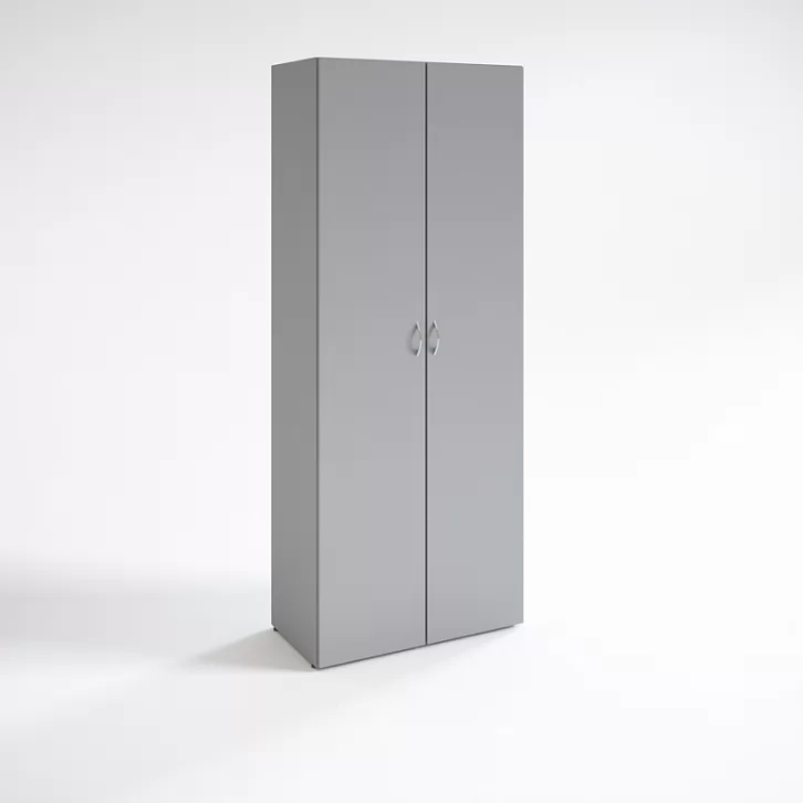 Гардероб стоит на регулируемых опорах. Другие модели шкафов в эконом-сегменте, а также офисные столы и тумбы вы найдете в коллекции Кономи.