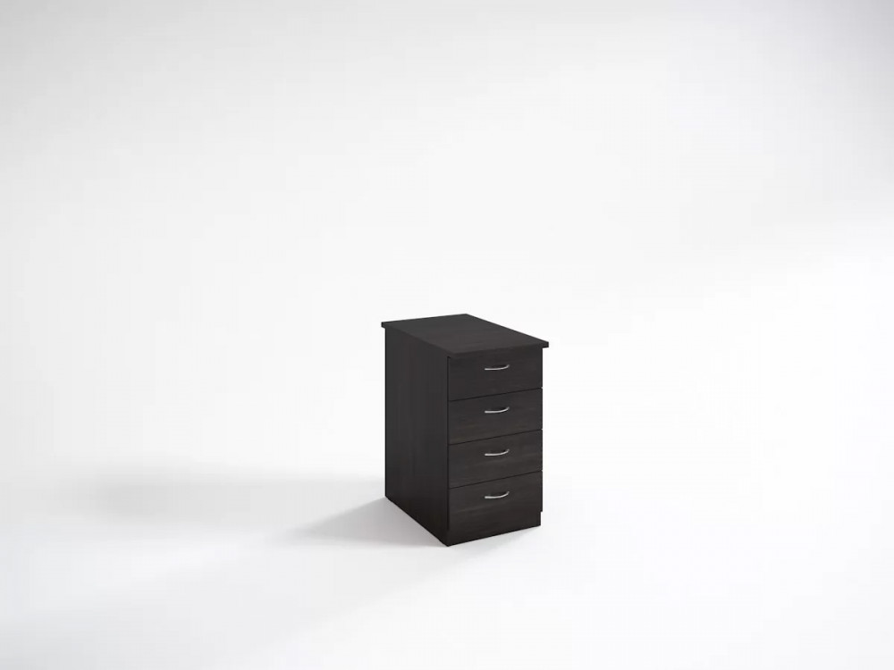Приставная тумба подойдет для офисных столов из коллекции Кономи с глубокими боковинами - 68 см. Ее четыре ящика оснащены роликовыми направляющими и фасадами с полированными хромированными ручками в виде скоб. В качестве опор в комплект входят подпятники.