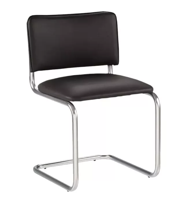 Удобный офисный стул "Sylwia Chrome" отличается сдержанным дизайном. Слегка пружинящая металлическая основа обеспечивает комфорт сидящего. Пластиковые опорные кольца на полозьях предотвращают скольжение и защищают напольное покрытие. Обивка выполнена из искусственной кожи - высококачественного материала, характеризующегося устойчивостью к износу.