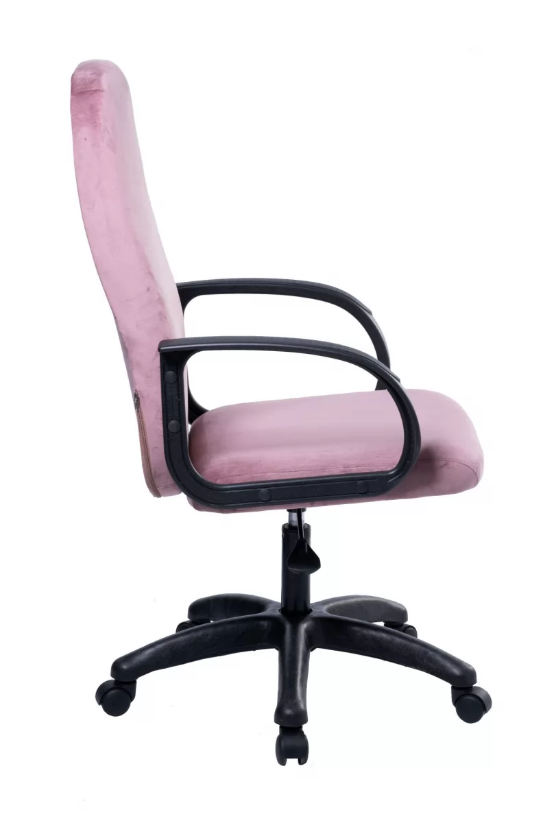 Обивка кресла выполнена из прочного велюра, который устойчив к истиранию и пачканью. Достаточно одной сухой чистки в неделю — и мебель из текстиля сохраняет аккуратный внешний вид длительное время. Для перемещения кресла предусмотрены колеса, надежно закрепленные в пластиковой крестовине. Также в модели имеются широкие и удобные подлокотники.