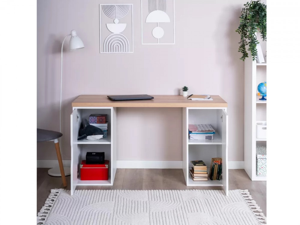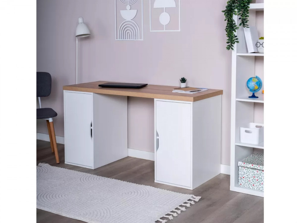 Cтол письменный 140x75x55 ИНГАР 2/ДВ/ДВ дуб беленый/белый