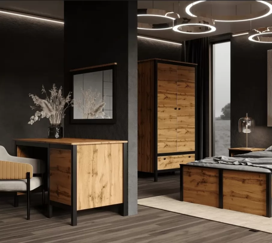 LOFT стол письменный BIU/130 (Дуб вотан/Черный)