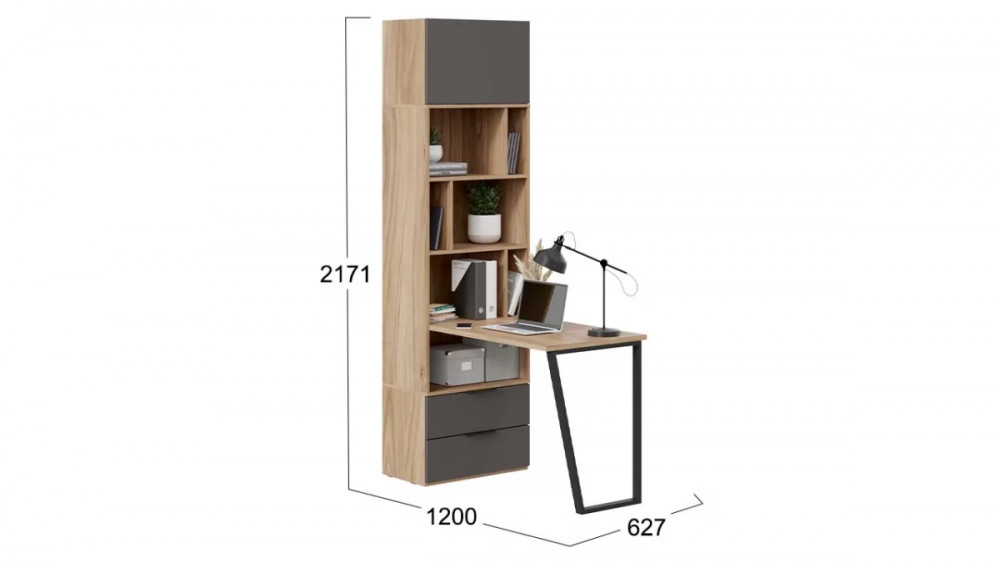 Шкаф комбинированный (366) со столом «Порто» Исп.2 Яблоня Беллуно, Графит софт