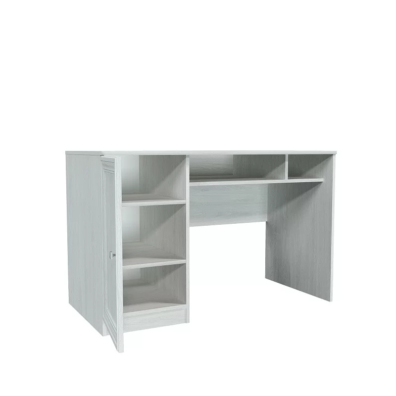 Классический письменный стол можно поставить в гостиную или кабинет. Столешница глубиной 587 мм позволит удобно разместиться с ноутбуком и бумагами. После работы их можно убрать на полку под столешницей. В боковой тумбе две полки, регулируемые по высоте. Их можно не устанавливать и в свободную нишу поставить компьютерный процессор. Высота стола - 765 мм - обеспечит комфортную работу человеку высокого роста.