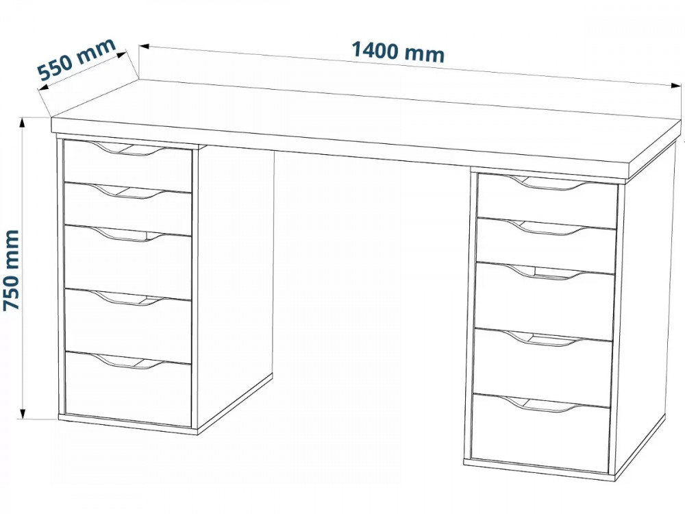 Стол письменный 140x75x55 Ингар 2/55 дуб беленый/серо-бирюзовый