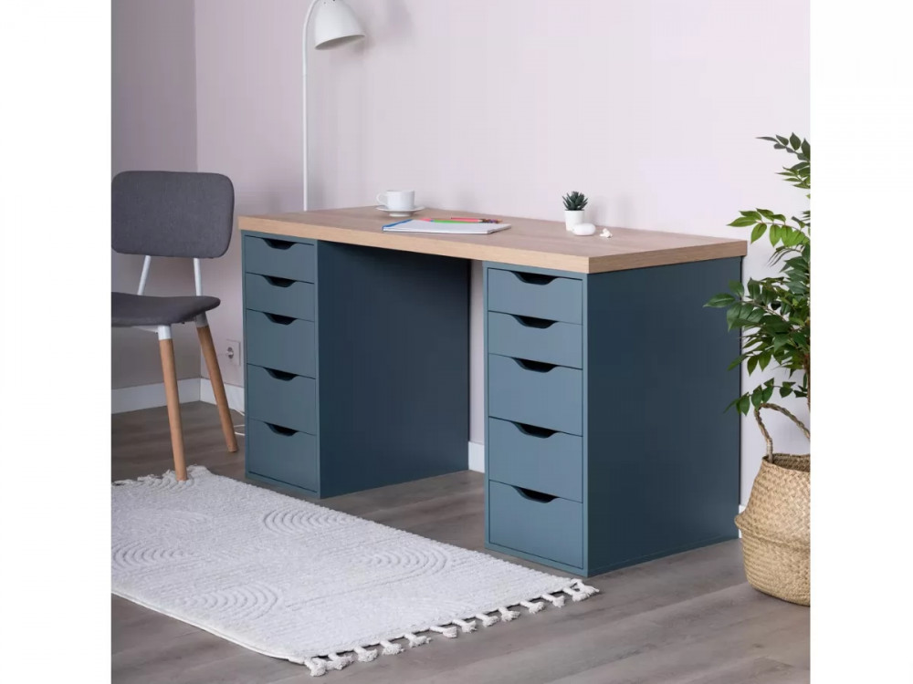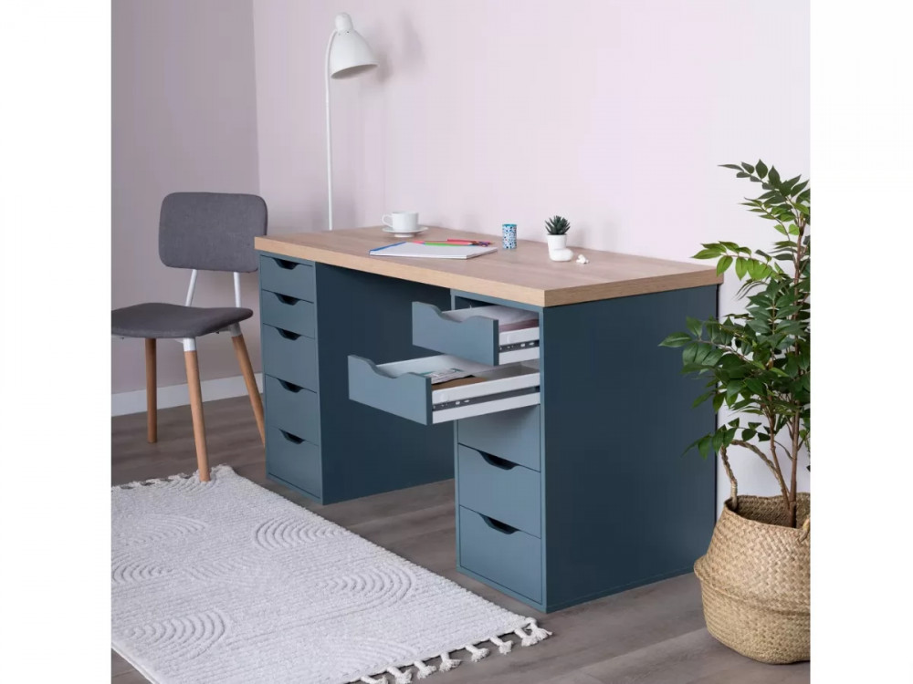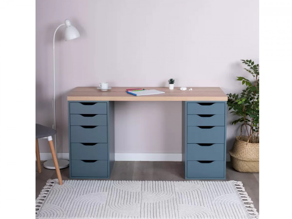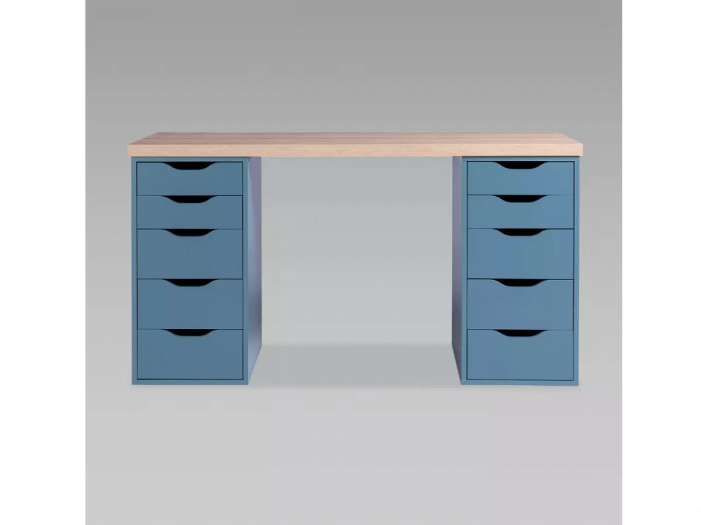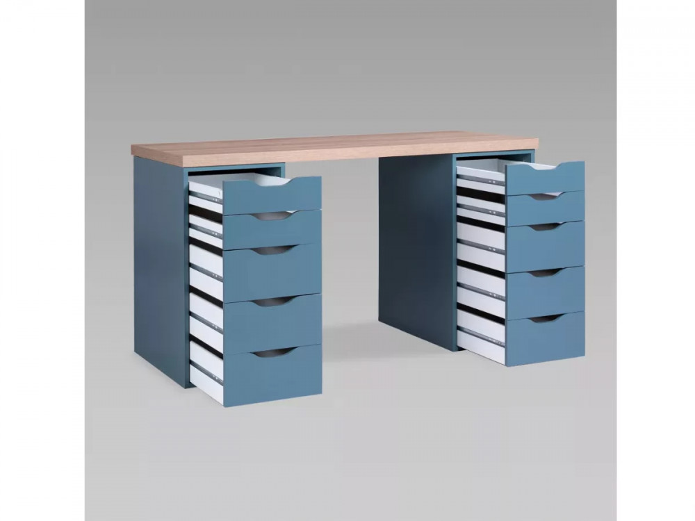 Стол письменный 140x75x55 Ингар 2/55 дуб беленый/серо-бирюзовый