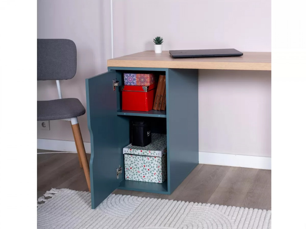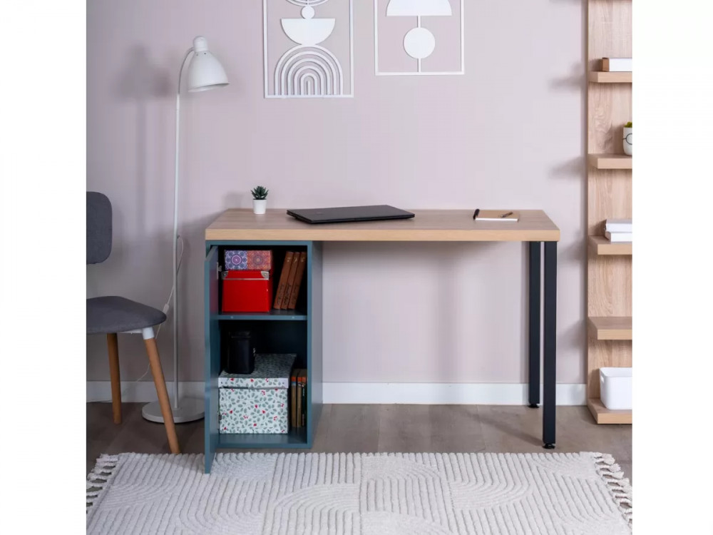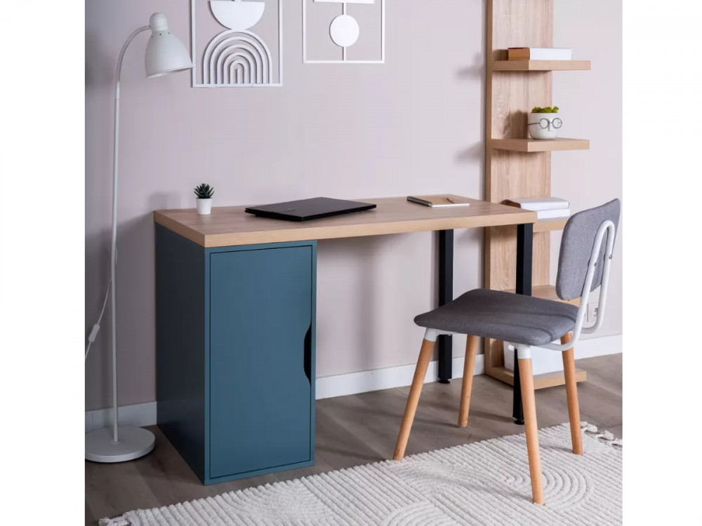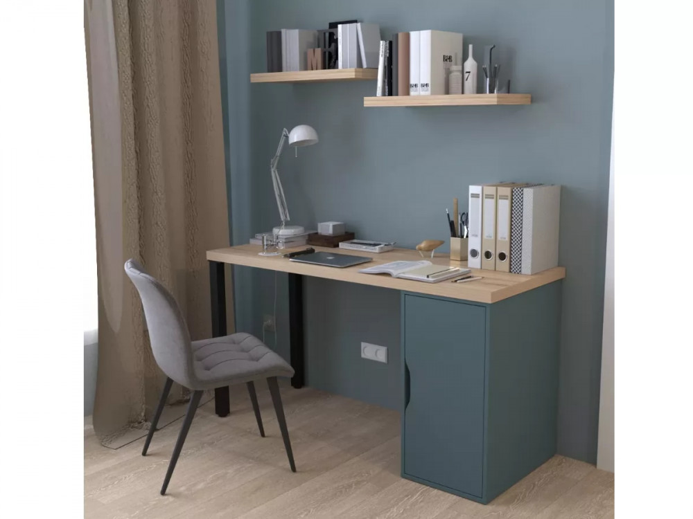 Стол письменный 140x75x55 ИНГАР 2/ДВ/T дуб беленый/серо-бирюзовый/черный