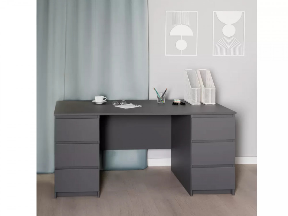 Стол письменный 6 ящиков 151х65 Кастор Серый