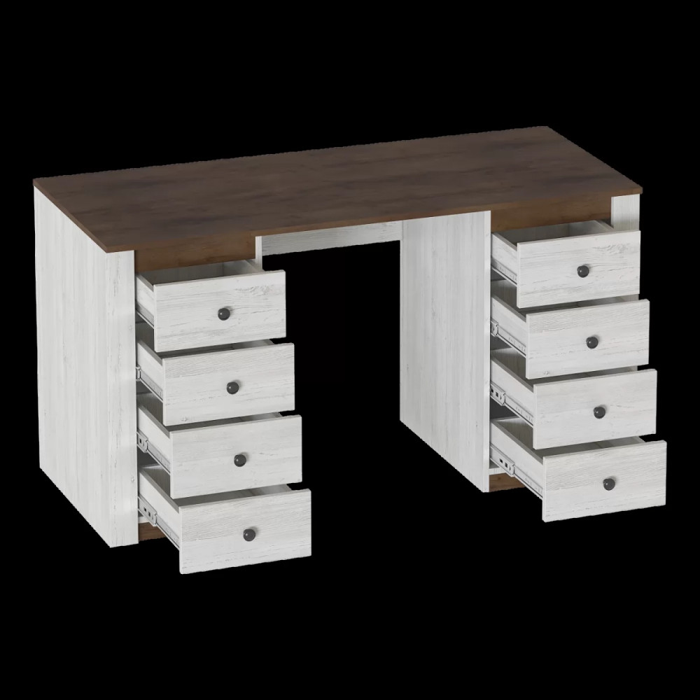 Стол изготовлен из качественных, безопасных материалов, что гарантирует его надежность и долговечность. В столе установлено восемь выдвижных ящиков, которые идеально подходят для хранения документов и канцелярских принадлежностей. Также на столе есть место для монитора компьютера и клавиатуры.