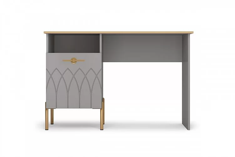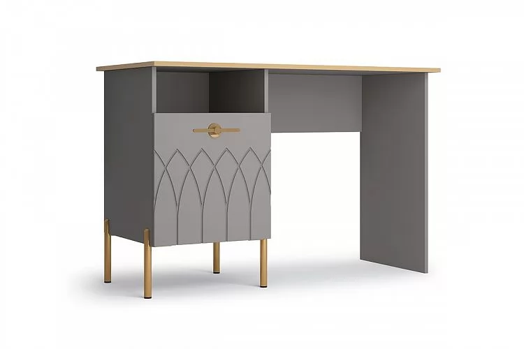 1. Надежные материалы – ЛДСП класса эмиссии Е 1 в сочетании с МДФ фасадами. Поверхность фасадов soft touch с фигурной фрезеровкой – один из самых модных трендов в дизайне мебели. Яркие ручки и золотая кромка эффектно подчеркивают стиль мебели.