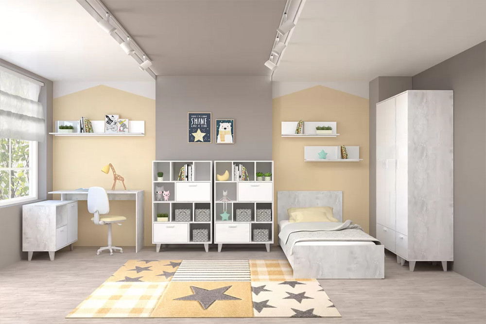 ЭГО К-1 Комод с 2мя ящиками бетон светлый/белый глянец на ножках
