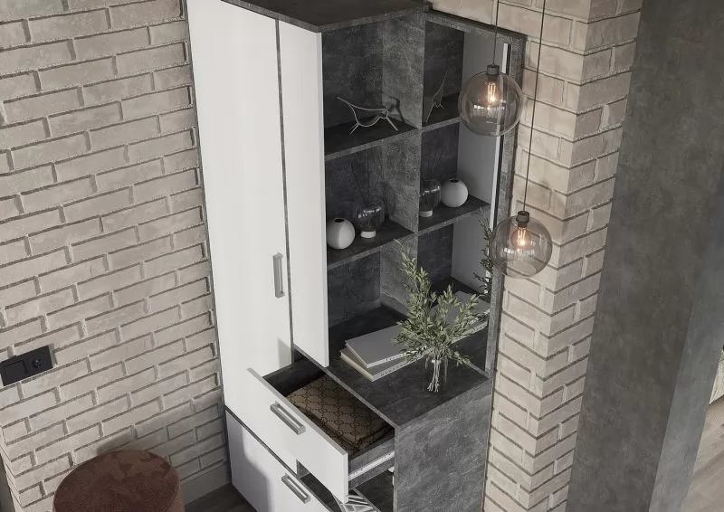 ДЕНВЕР ПН 02 Пенал открытый (ш547*г504*в2020мм), Ателье светлое /Белая шагрень