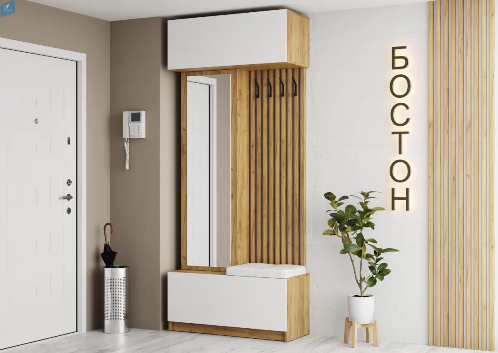 Прихожая Иннэс-4, дуб крафт золотой/белый глянец