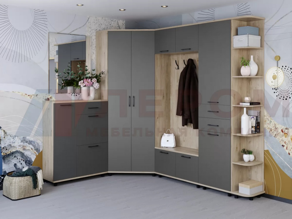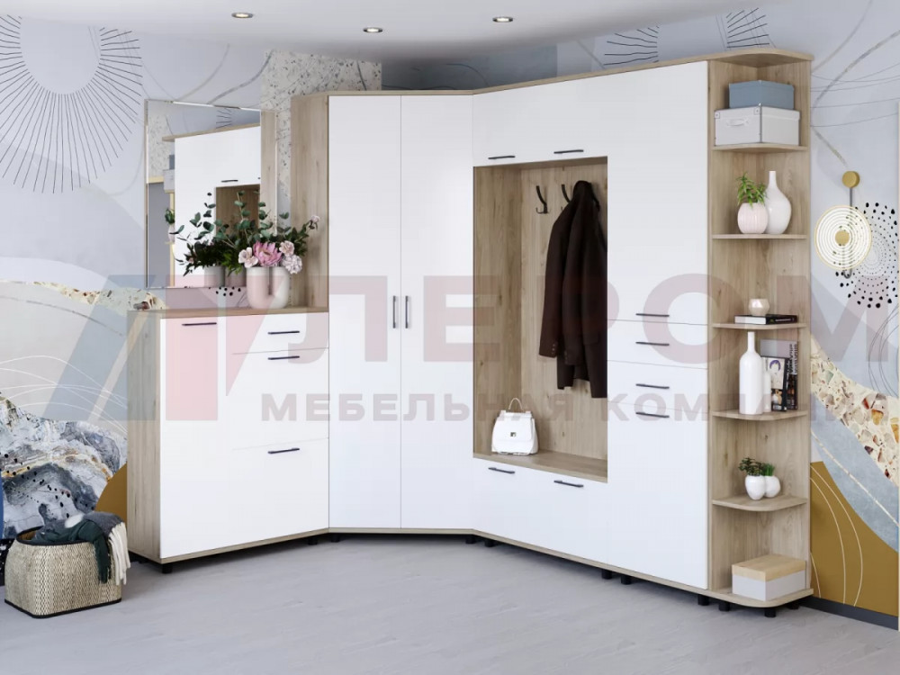 Прихожая Прайм-1 Белый текстурный и Дуб Крафт Золотой