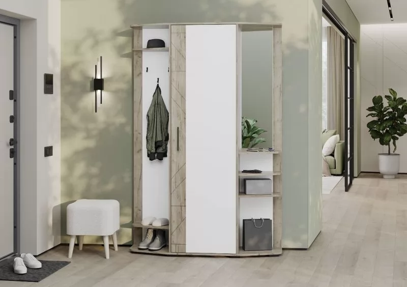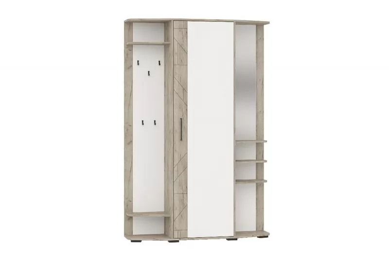 Прихожая ОМЕГА УНИ (ш1350*г355*в2020мм), ЛДСПДуб крафт серый/ЛДСП Белый-МДФ Дуб крафт серый