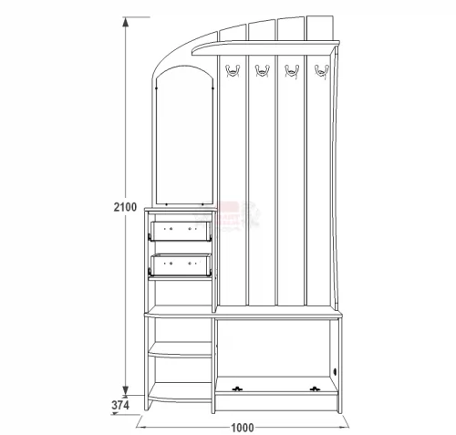 Габариты (ВхШхГ): 2100х1000х374 мм.